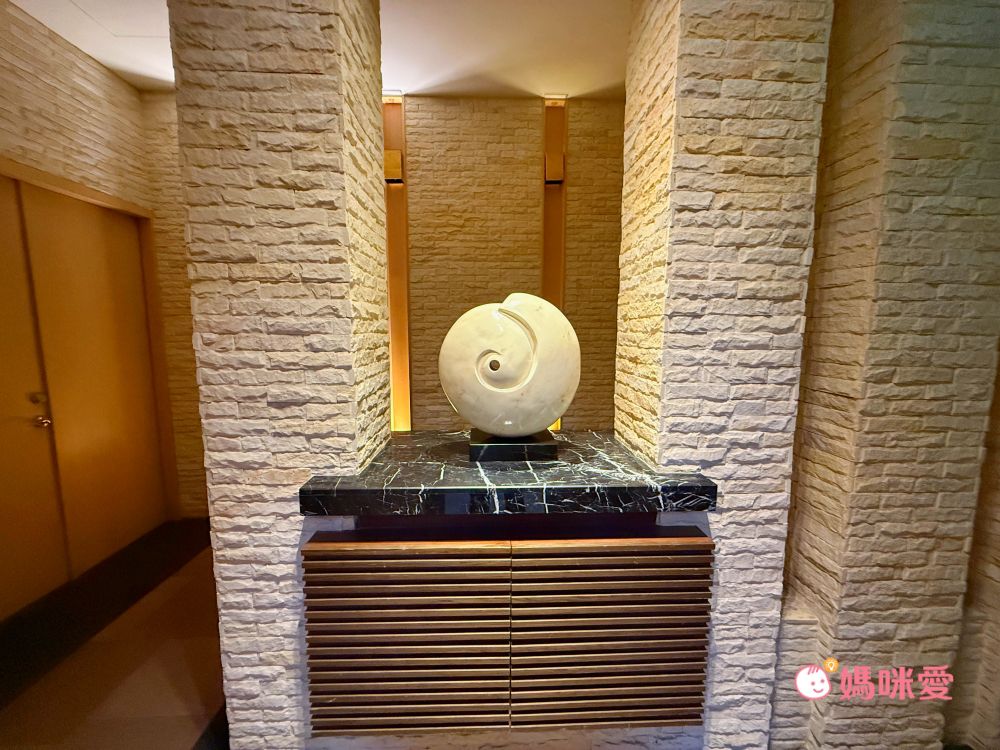 溫泉會館棟內每層樓都精心裝潢,電梯出來可以看到以石材搭配原木的裝潢風格,鋪設地毯不怕走路的噪音,也有各種藝術品裝飾,相當有豪華感。