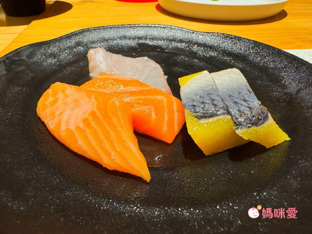 而我最喜歡的則是日式現點區,可現場請工作人員切生魚片,一組有六片,可指定要哪一種魚肉,能大口大口享受生魚片的感覺真好:D
