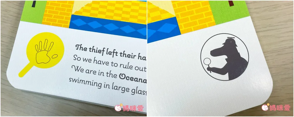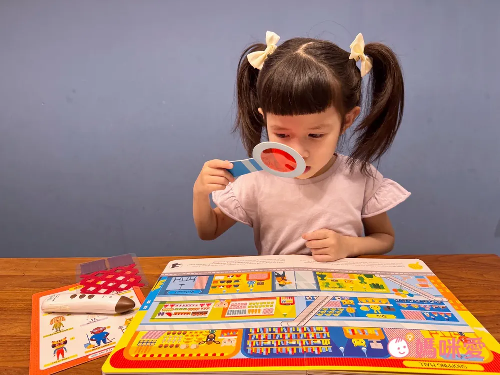 孩子邊點讀邊拿著放大鏡尋找犯人,再用標記貼紙移除無辜嫌疑人,還要尋找隱藏的圖案⋯⋯是一本讓孩子大腦小手停不下來的推理書呢🤣