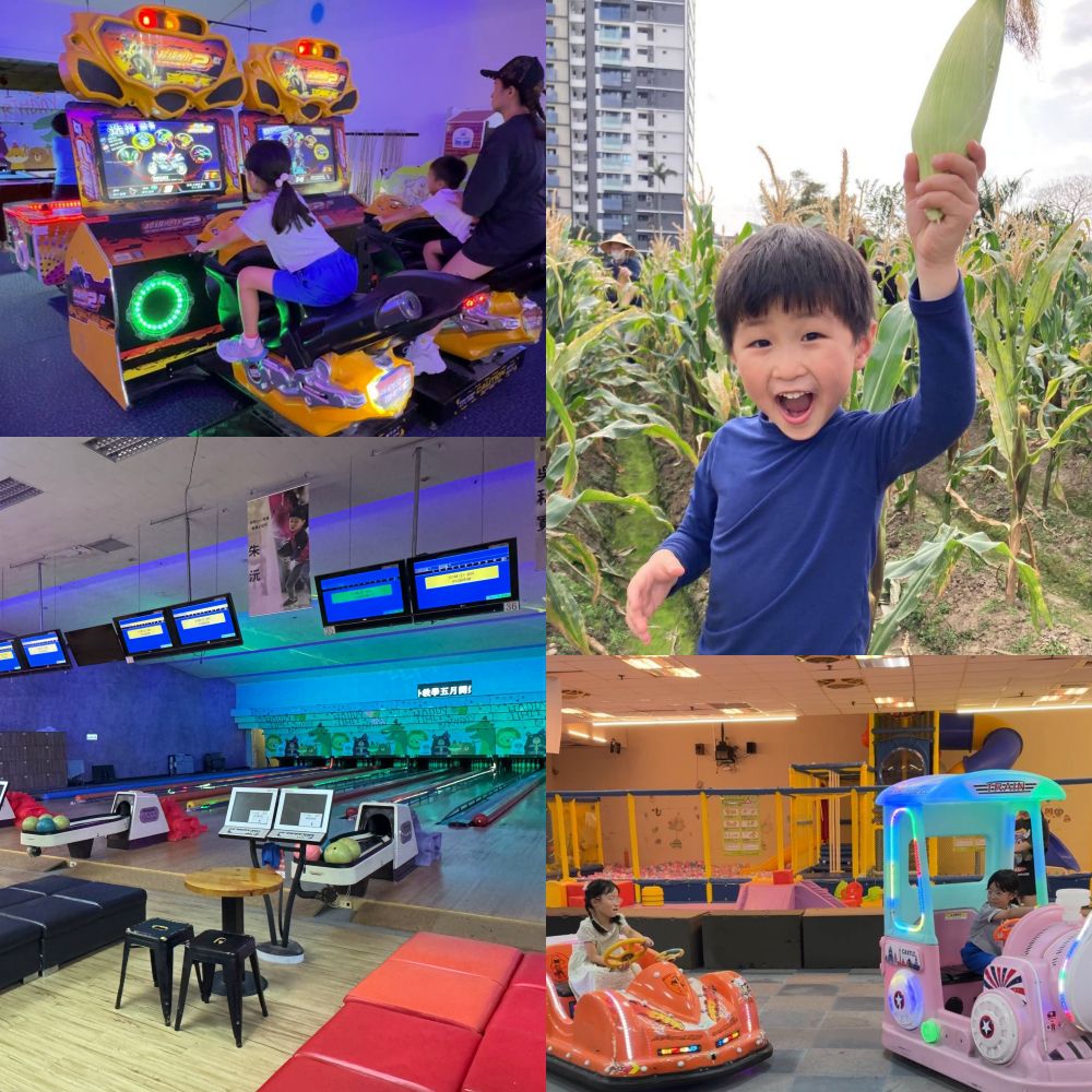 二樓親子館分成幾個區域:「保齡球道區」、「電子遊樂區」、「球池及電動車區」及「用餐休憩區」。只要購買本次的親子票,$500就可以一大一小暢玩全區三小時*;只要再加$300就能讓都市孩子體驗採文旦、拔玉米、高麗菜或拔蘿蔔**,地點就在距離球館走路5分鐘可達的城市農園,實在太驚喜!(田園活動體驗依季節調整主題,購票後需另外預約,依店家公告為主,將不另行通知)