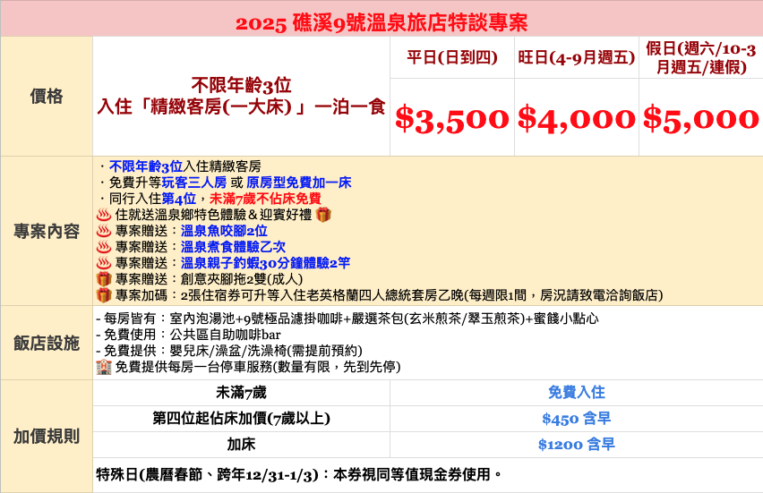 「9號溫泉旅店」座落於礁溪,距離礁溪火車站步行約10分鐘,與「礁溪捷絲旅」、「寒沐」僻鄰。