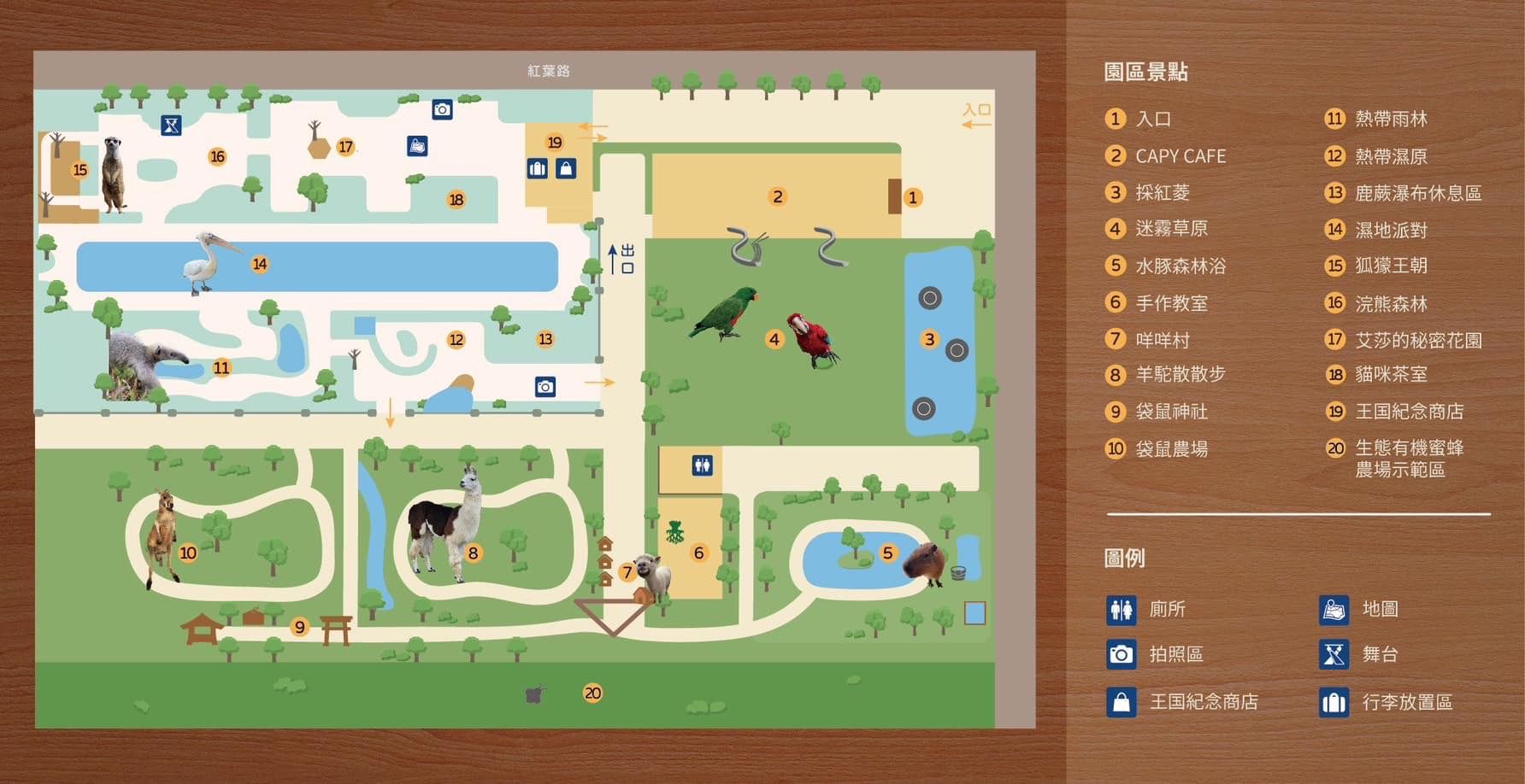 園內有多達超過20種的動物可以近距離互動、觀賞,保證小孩大人都會超~~愛!不管是超人氣的水豚、羊駝、袋鼠、狐獴、樹懶,還是老鷹、鵜鶘、鸚鵡通通有!也有很多特色的活動體驗、DIY可以參加,絕對可以在這邊玩上一下午~收穫滿滿的回家!甚至孩子還會說下次要再來玩~