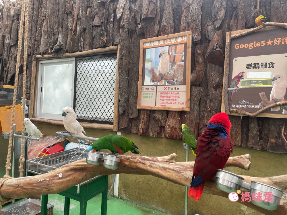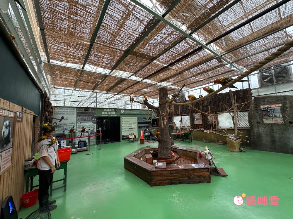 進入就可以見各式種類的鸚鵡,鸚鵡們都是非常近距離在身邊飛,可以看見刺飼養員頭頂上停了好幾隻鸚鵡非常可愛,如果伸手鸚鵡也會停留在手上,也可以餵食鸚鵡,這區真的長輩很愛,小樂的爺爺每次來都會等待鸚鵡停在頭上呢