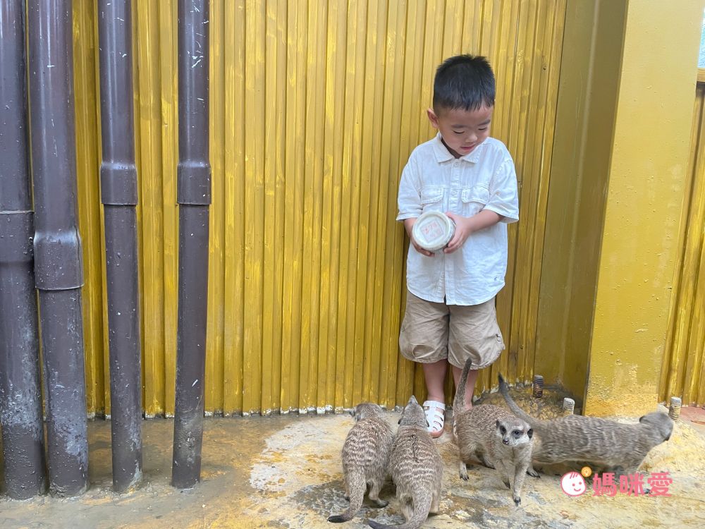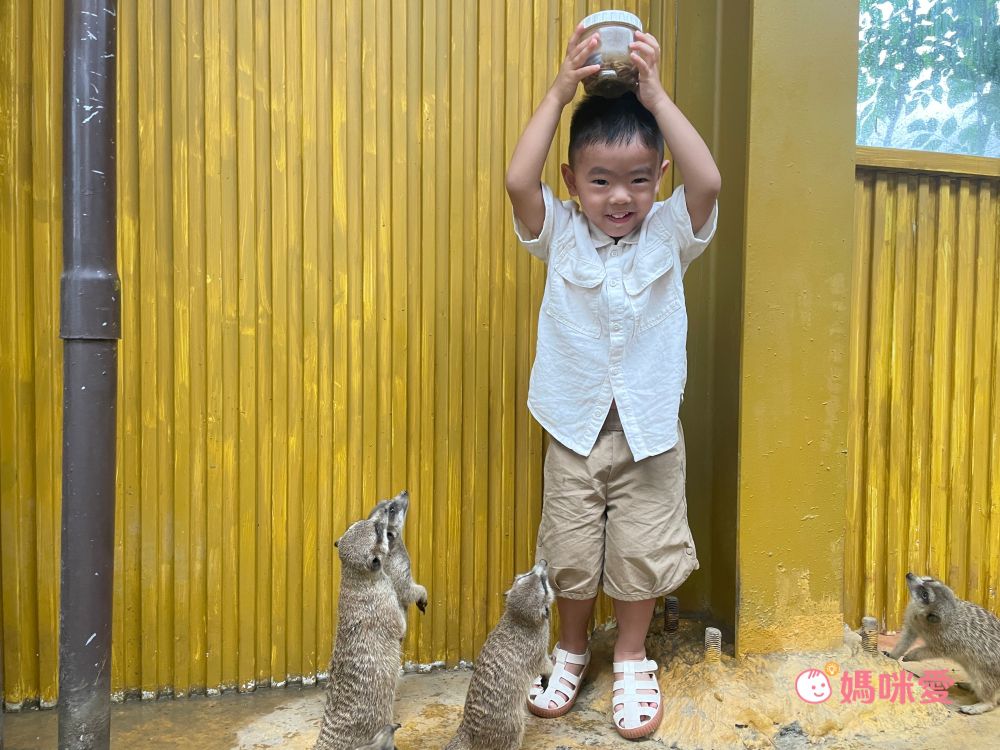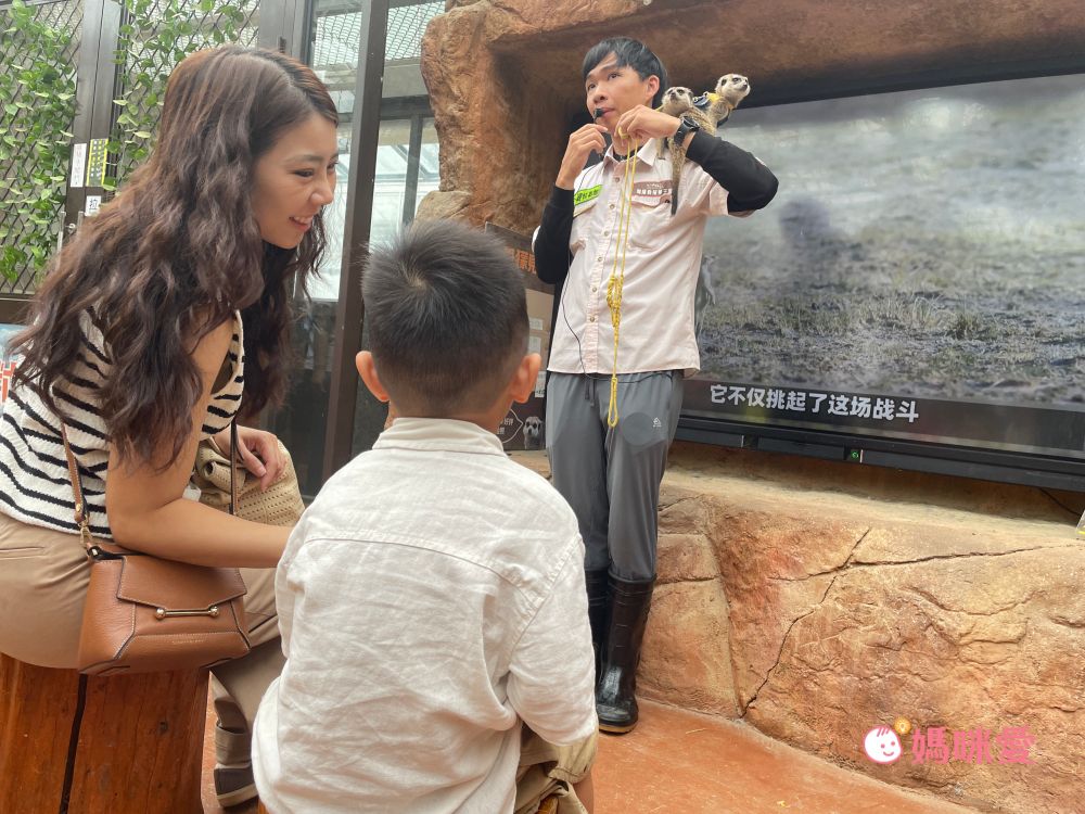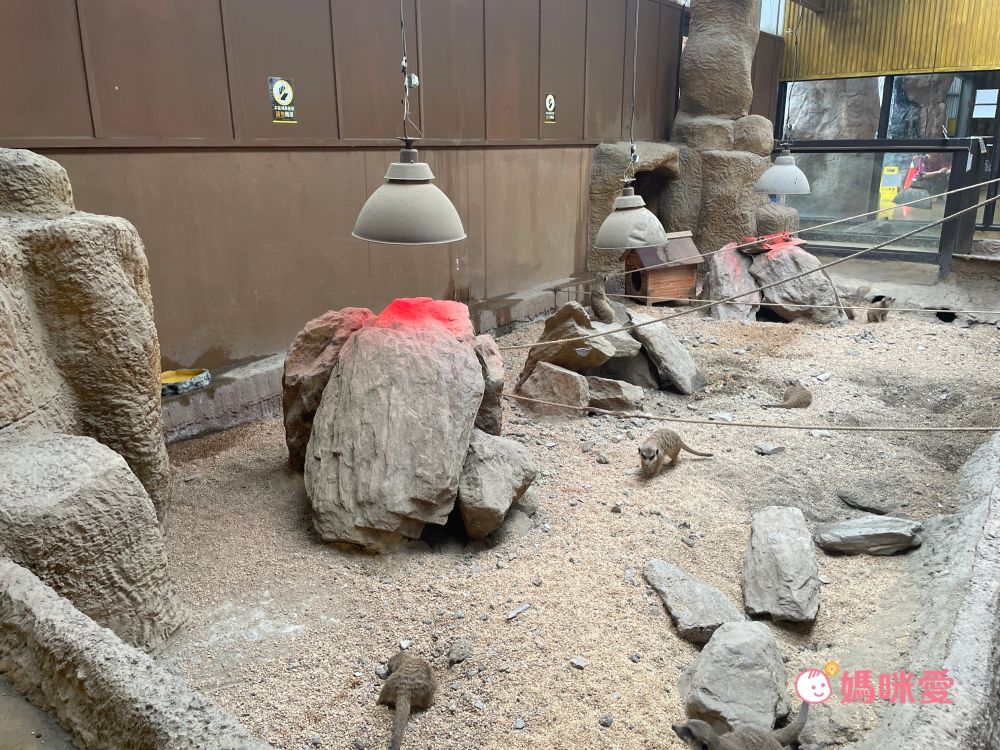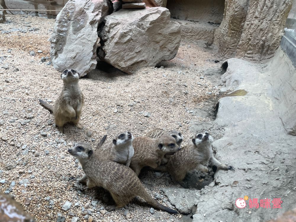 看看小孩和狐獴群一起真的不要太可愛了~要注意此區的狐獴是不能觸摸的喔!!如果想要摸摸可愛的小狐獴一定要預約『狐獴見面會』,場地就在狐獴王朝出口處,沙漠風格非常可愛,有電視牆會播放介紹狐獴的生態