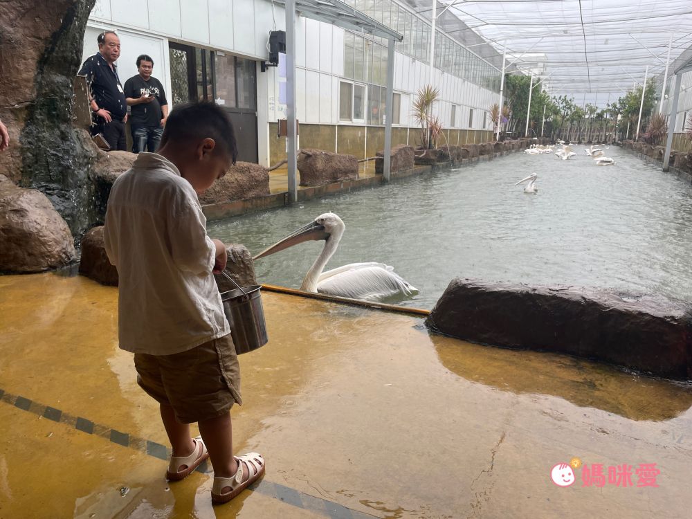 可以在櫃檯自費加購鵜鶘餵食體驗,工作人員會給一桶小魚,會搖鈴提醒鵜鶘過來吃飯,可以站在前方感受成群鵜鶘飛過來的震撼感,再將小魚拋給鵜鶘餵食。