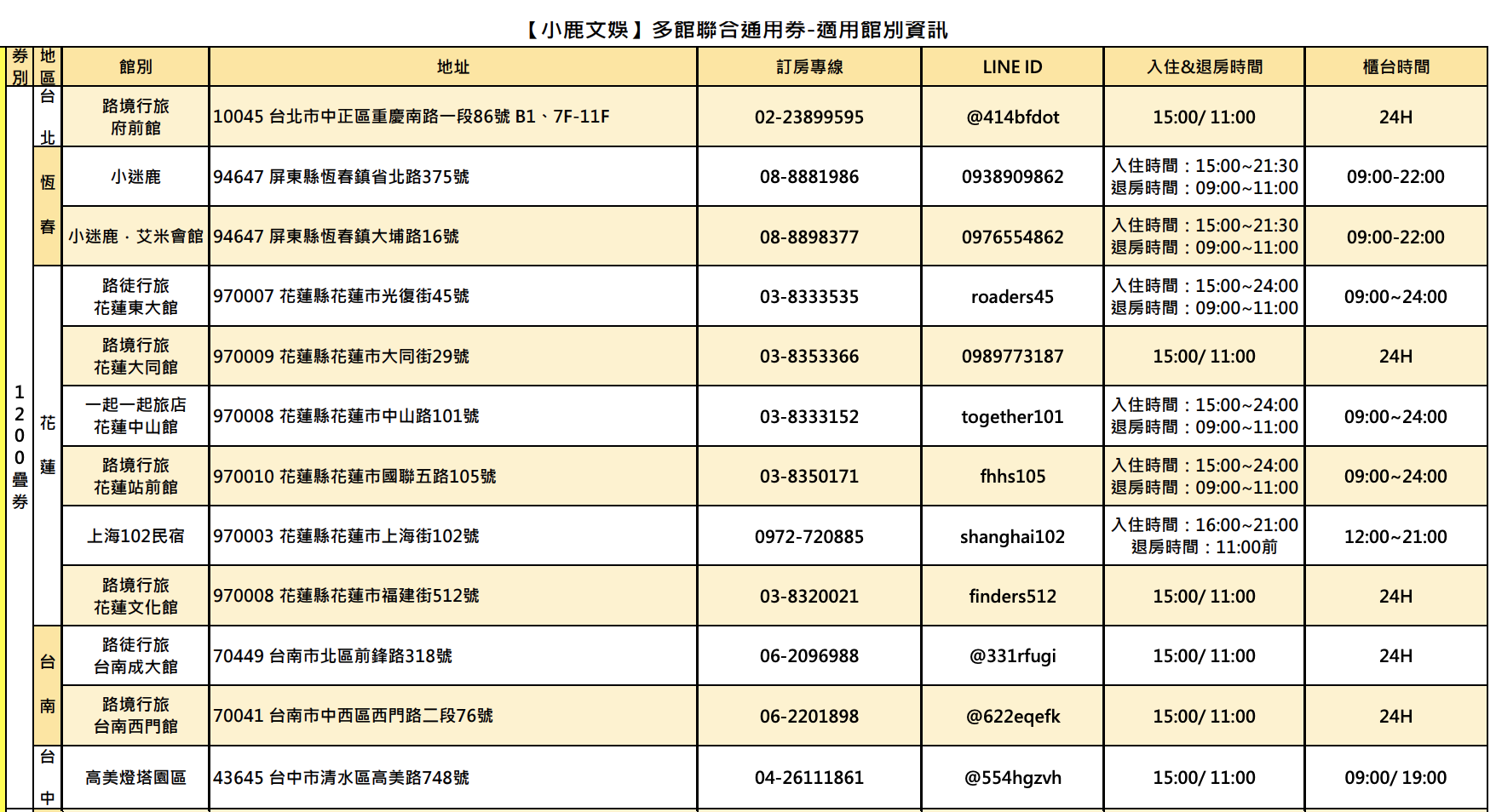 3.本券恕不與其他優惠促銷活動、優惠券合併使用,僅限向小鹿文娛集團內旗下各館直接電話或通訊軟體預訂使用,無法配合其他預訂平台訂房使用;旅館進退房時間及上述未提到之旅館規定和服務項目,