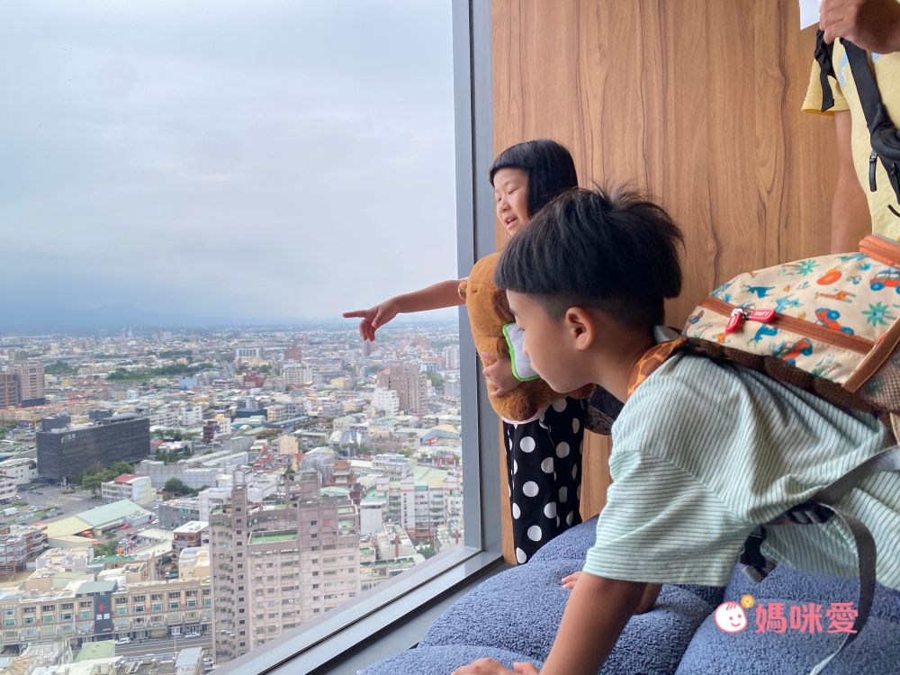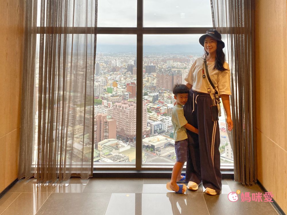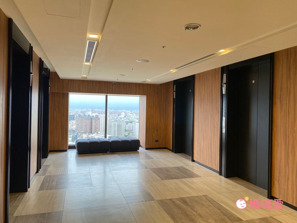 我們的樓層來到了24樓,一出電梯的景象我們全家驚呼!【嘉義福容voco酒店】不愧是全嘉義最高的大樓,光梯廳的景就嚇到我們,甚至在這裡看了一陣子才真的去房間哈~