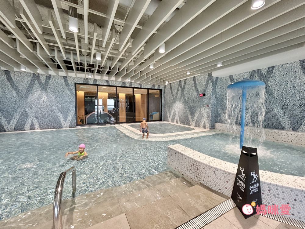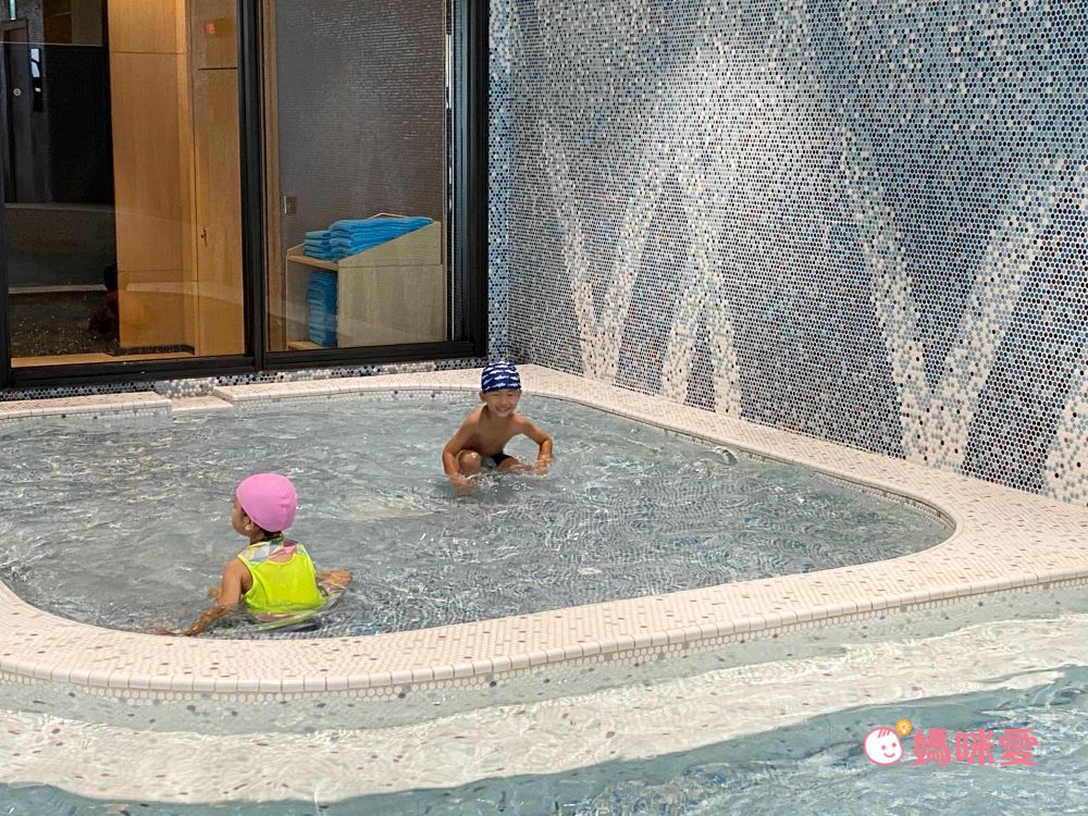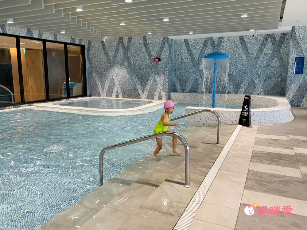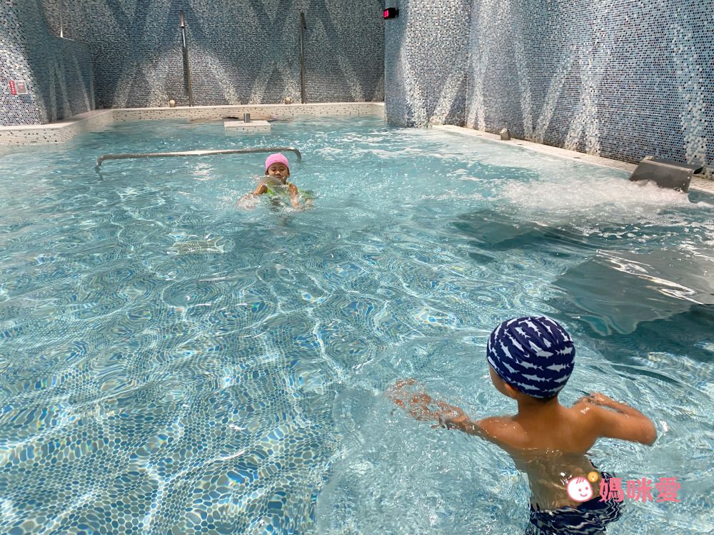 原本以為這裡比較不適合孩子,但兩隻跟著爸爸也一起來到這區~一起和爸爸體驗水療帶來的特別泳池樂趣