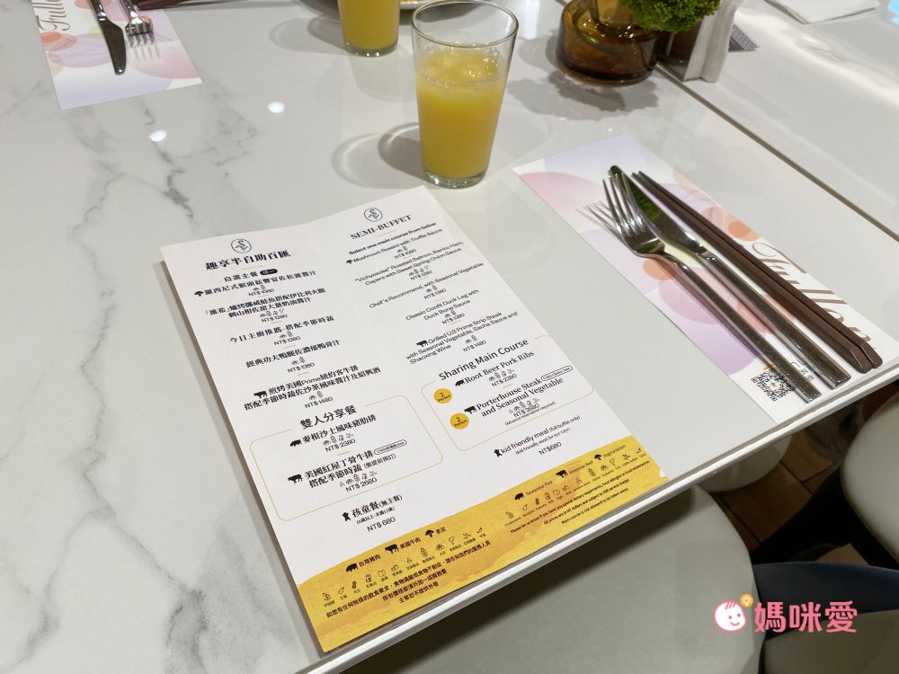 晚餐時段提供一份主餐及半自助的餐點服務,光主餐就讓我們好難選擇啊~我們最後選了雙人分享餐的美國紅屋丁骨牛排(搭配季節時蔬)
