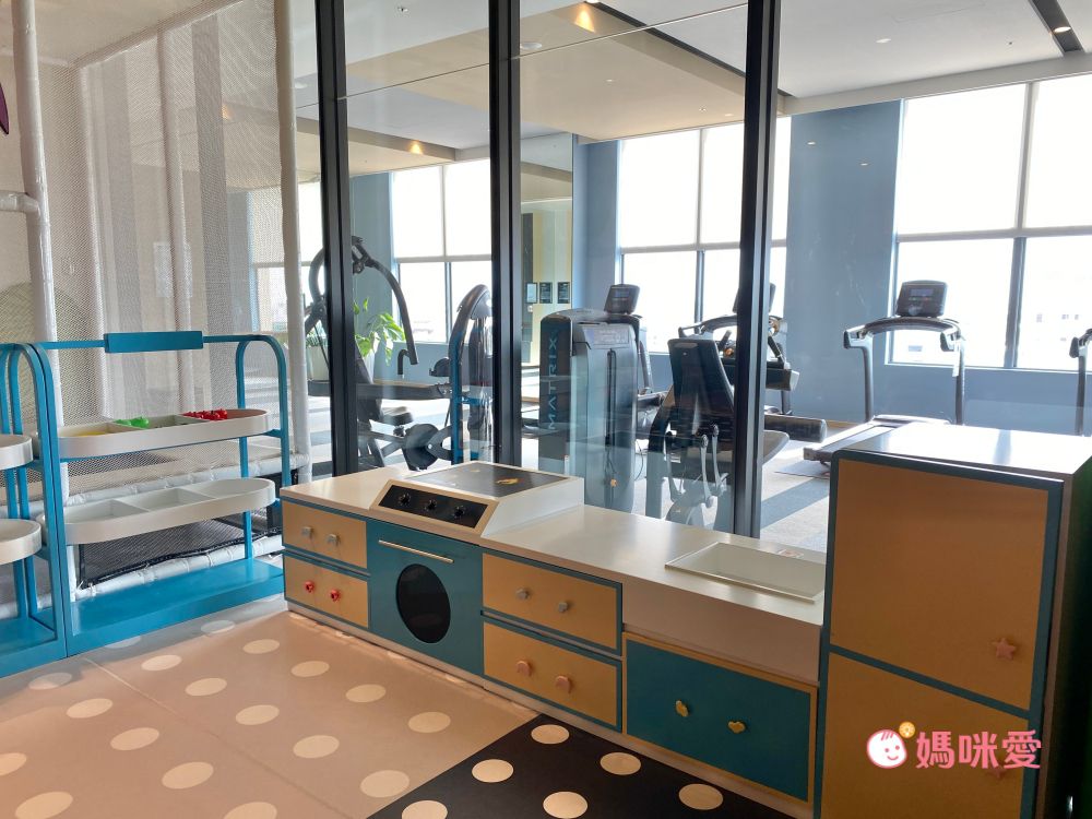 這裡除了有豐富多樣的健身器材能夠使用,讓想出遊又不想荒廢鍛鍊的人能夠有專業空間能使用之外,也有大片的落地窗能夠一邊運動一邊享受風景,而且一邊運動也能看到孩子們安全的玩耍~