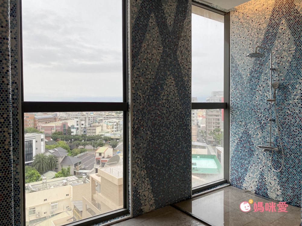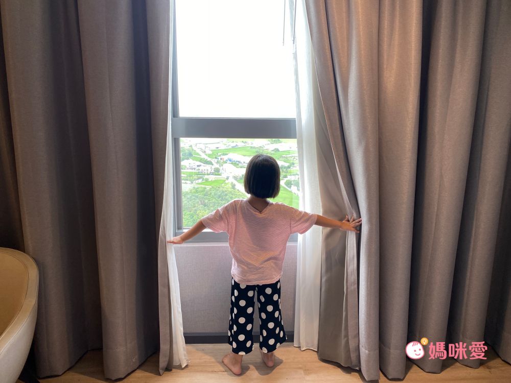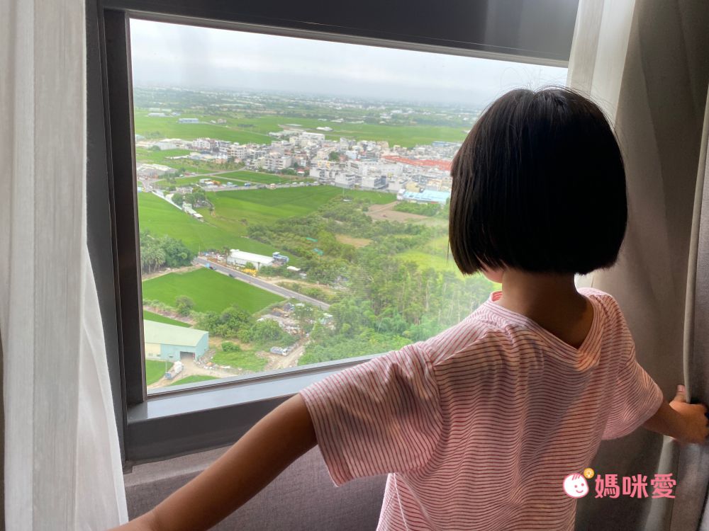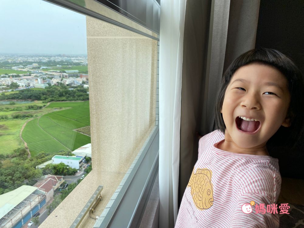 旁邊就是一大片的落地窗,窗簾打開映入眼簾的就是嘉義市景,超級美超級療癒耶!!