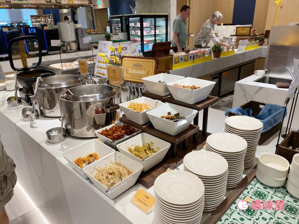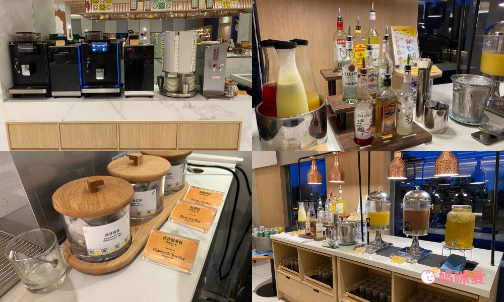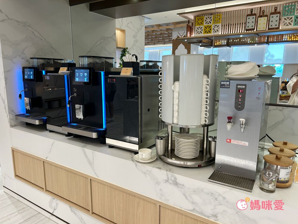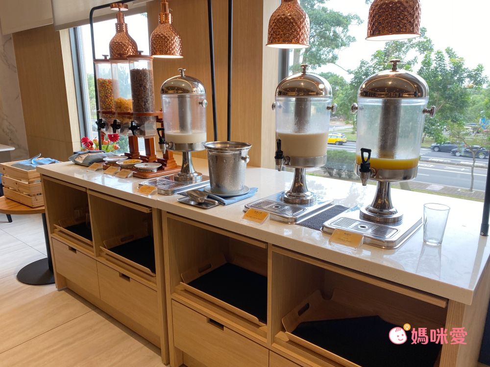 飲品有咖啡機和沖泡熱茶區,和果汁、無糖豆漿和鮮奶,另外還有大小朋友都喜歡的麥片