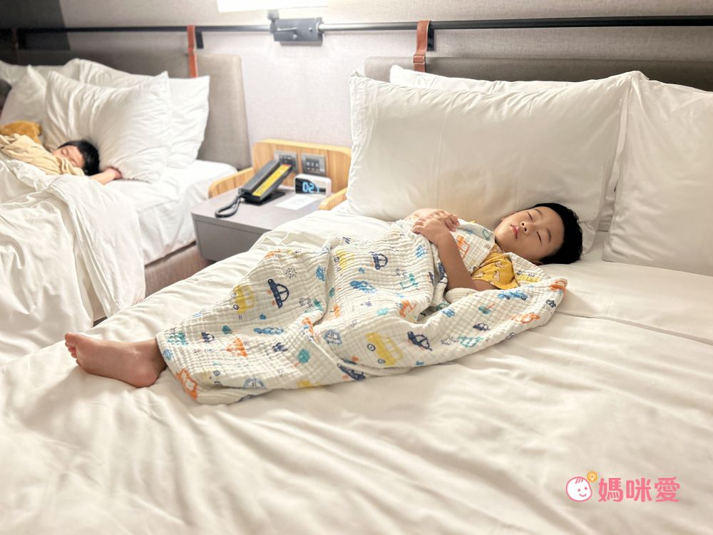加大的雙人床躺起來非常舒服,連床頭都有巧思,枕頭不會太硬太高也不會過軟扁塌,躺起來是很OK很舒適!