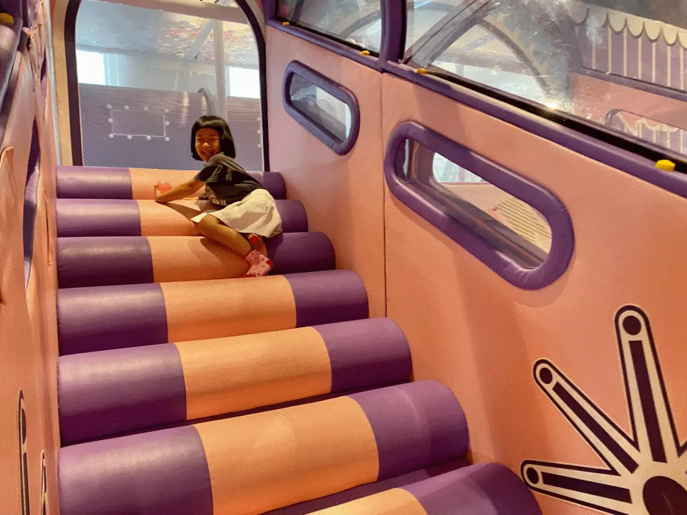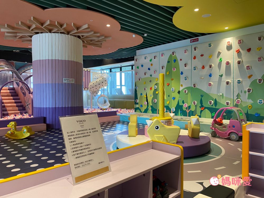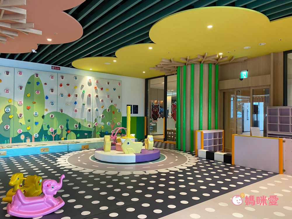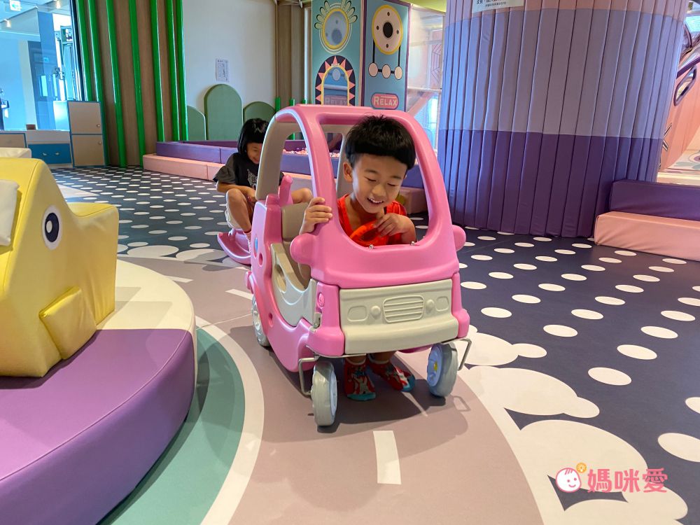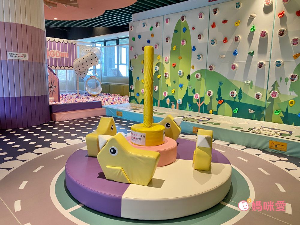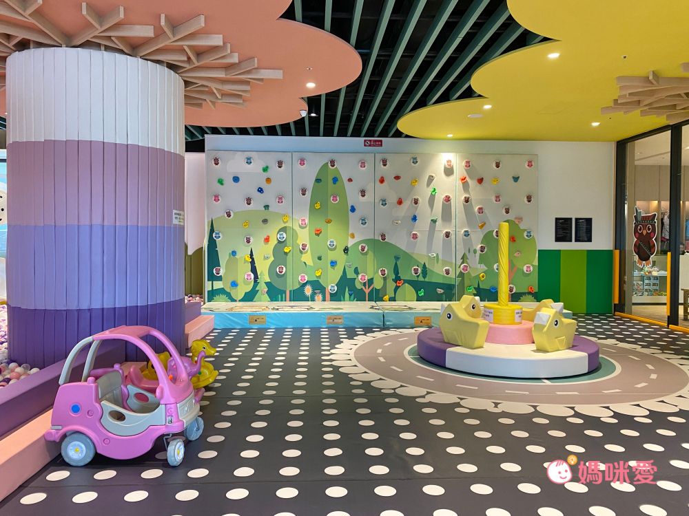周邊有旋轉木馬、攀岩牆和跳床及家家酒區,另外還有搖搖馬和車車,多樣選擇能滿足不同年齡層和不同遊戲喜好的孩子!