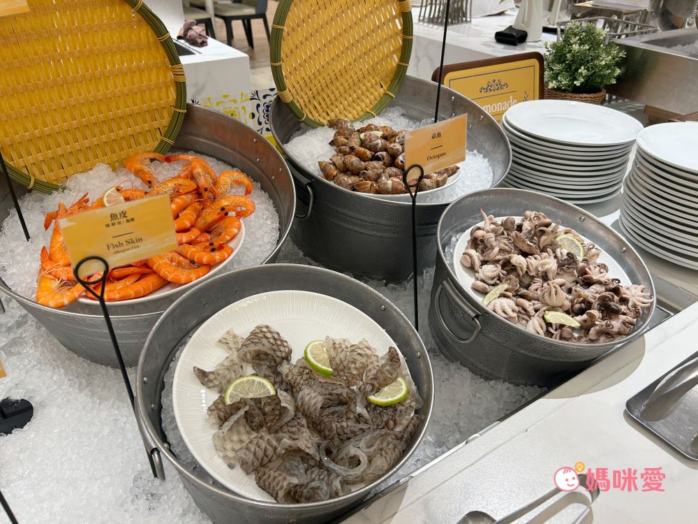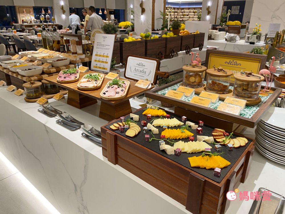 佐酒小食類、起司區,這裡的起司和肉品豐富到我無從選擇,每種都想來一點!有這區也對應了另一邊飲料區的酒品!自助吧裡有酒類區域真的是太強了~但我們要顧小孩只能忍痛錯過