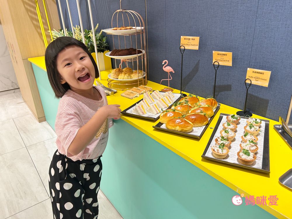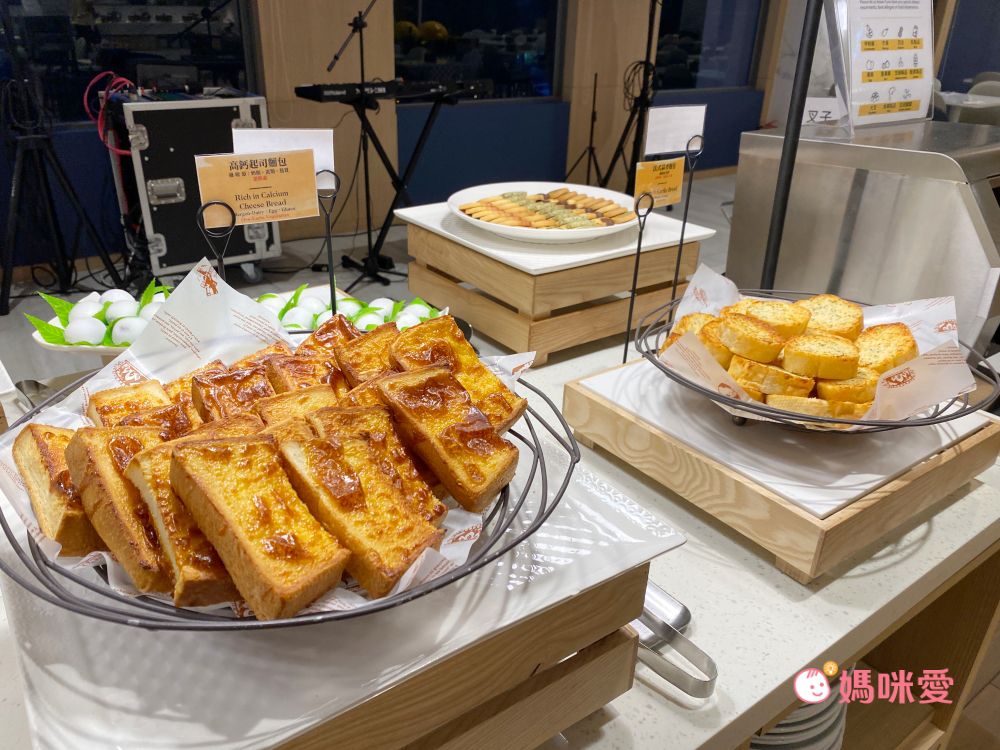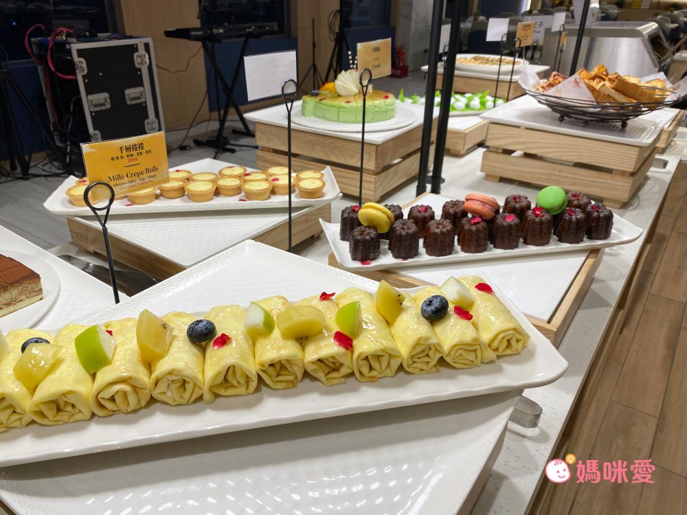 另一邊的中島還有一區麵包、甜點區,這裡選擇也超多! 蛋撻、馬卡龍、可麗露...我們還沒開吃就先來看到時候要吃甚麼飯後甜點了~