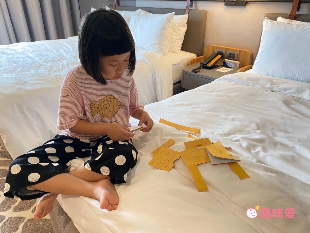 而迷你吧的部分讓我們母女玩很久,因為除了小零食和沖泡包之外,還有小巧思在裡頭!
