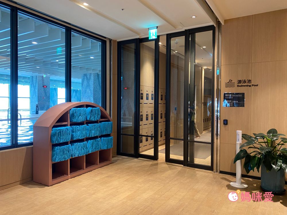 voco的游泳池在櫃台登記後會取得入場和置物的手環,透過手環感應入內及開啟置物櫃。