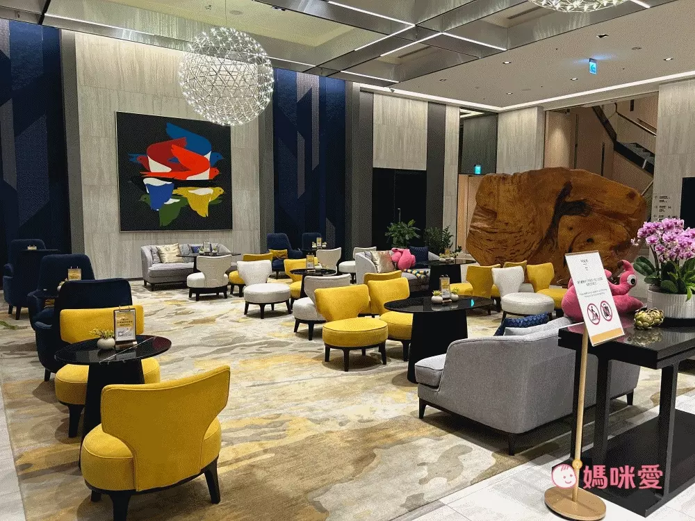 一進到【嘉義福容voco酒店】大廳整個明亮寬闊,我好喜歡這裡的配色及裝潢風格,具現代簡約感的空間但又加入了暖色系的傢俱,點綴了撞色系的藍來跳脫幾個服務空間。