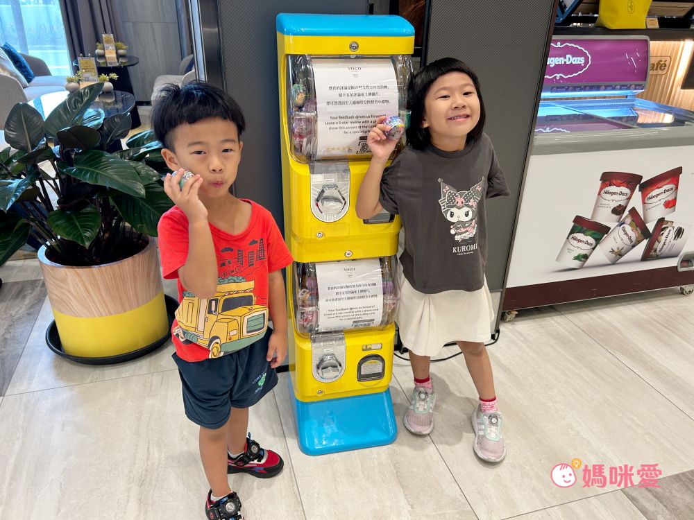 在享用過2樓的田園西餐廳後,能夠在Google評論寫下心得與照片後,至1樓的Lobby Cafe出示畫面,即可獲得扭蛋幣,在一旁有扭蛋機台可以轉出驚喜小禮物,整個在嘉義福容voco酒店的住宿就像是開美好的盲盒般,每一個小地方、每一層樓都能發現不一樣的住房樂趣,也在這裡享受到舒服自在的親子旅遊空間!