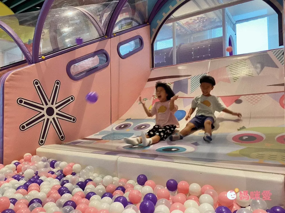裡面規劃了大面積的球池和大滑梯、旋轉滑梯