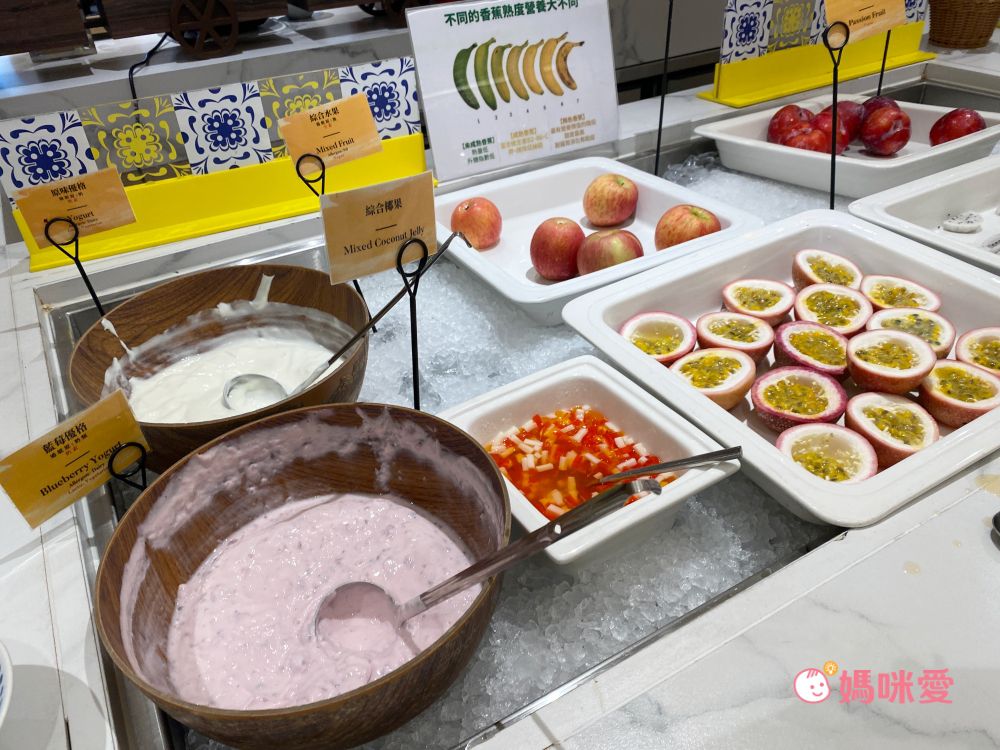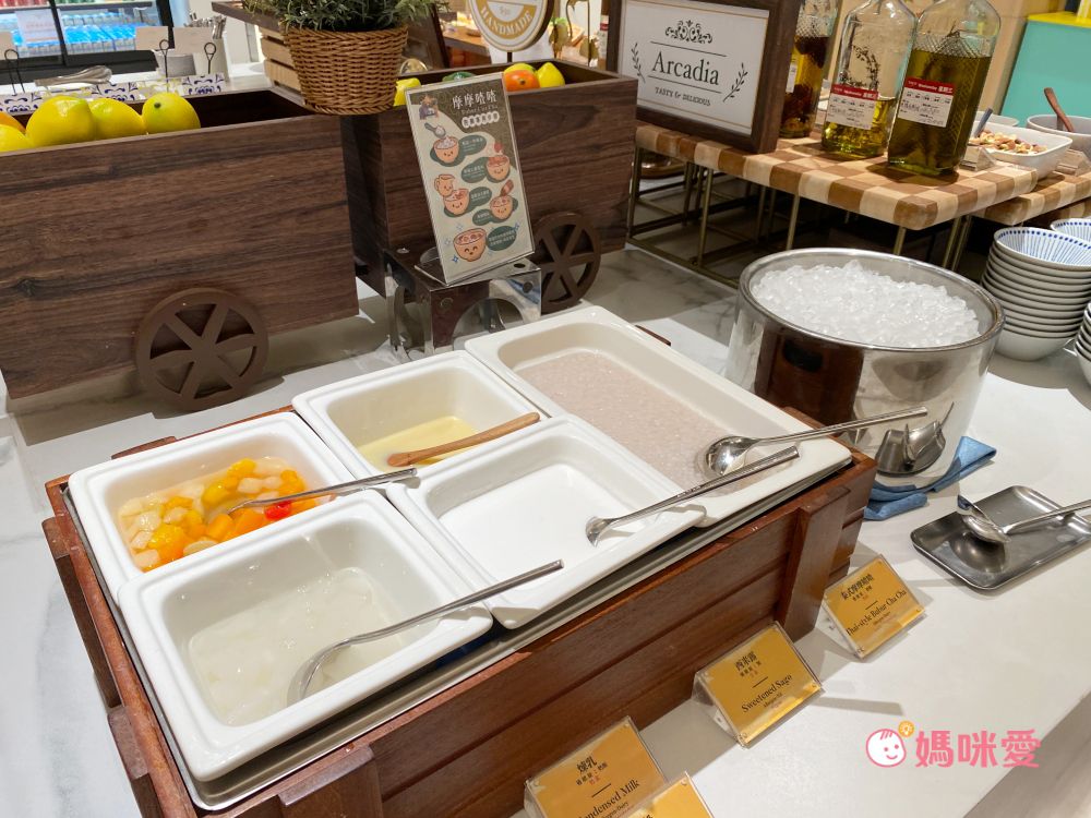 一旁還有同樣能自己動手製作的摩摩喳喳,來自東南亞地區的專屬甜點,配料也非常全面道地呢~