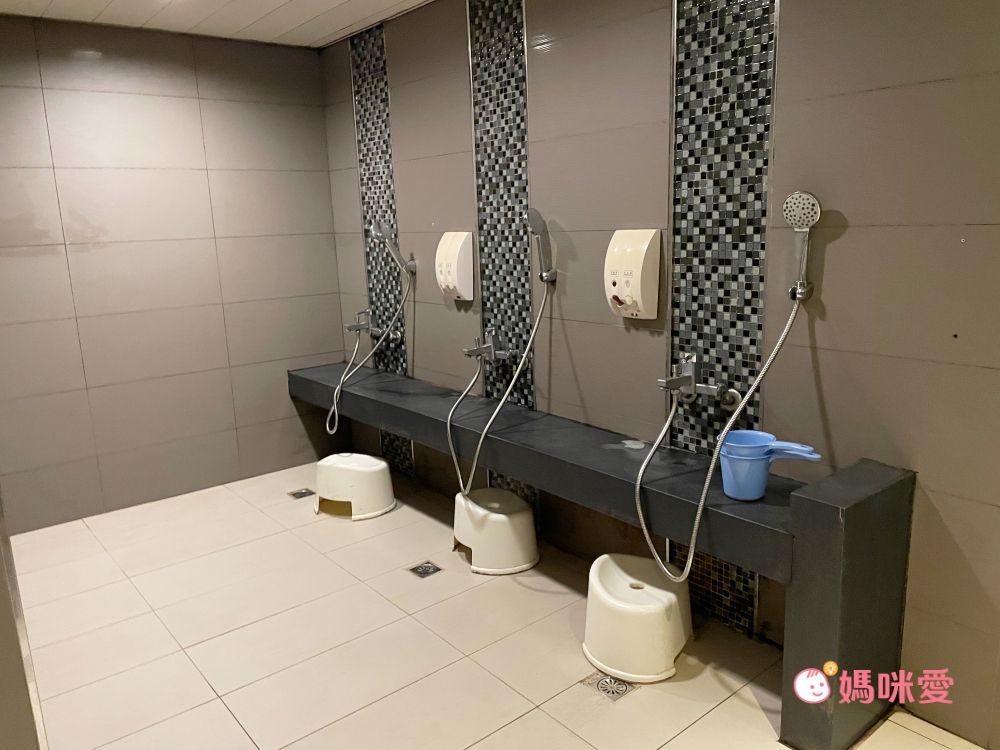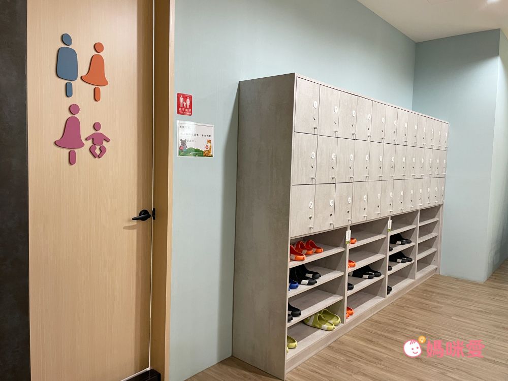 休息區旁邊就有洗手間,離遊戲區也很近,小孩玩到一半要上廁所距離很近很方便,提供拖鞋可以穿進廁所非常貼心,不想背包包陪玩,上方有提供置物櫃也可以使用