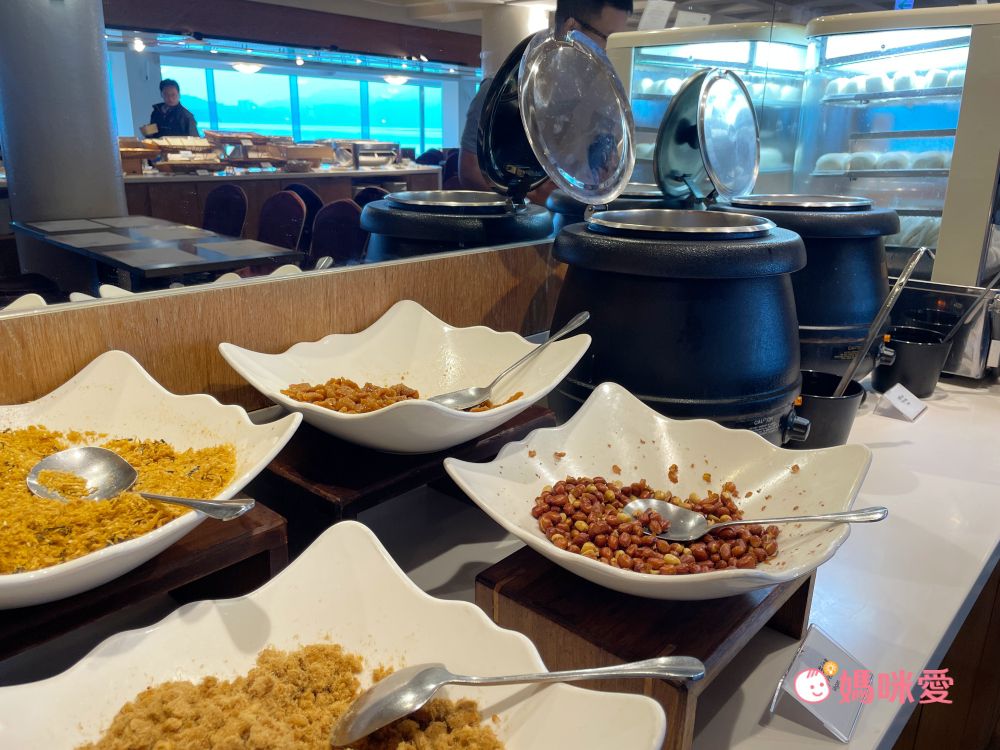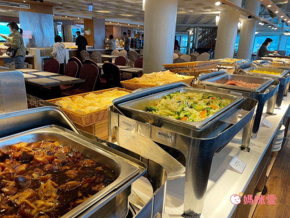 餐點從中式早點稀飯、饅頭、豬腳、龍蝦沙拉、冷菜到西式麵包種類非常豐富好吃,從小孩到長輩全家人都可以吃到自己想吃的食物,完全不擔心沒有適合小孩的食物,樂樂一家吃的很滿意開心