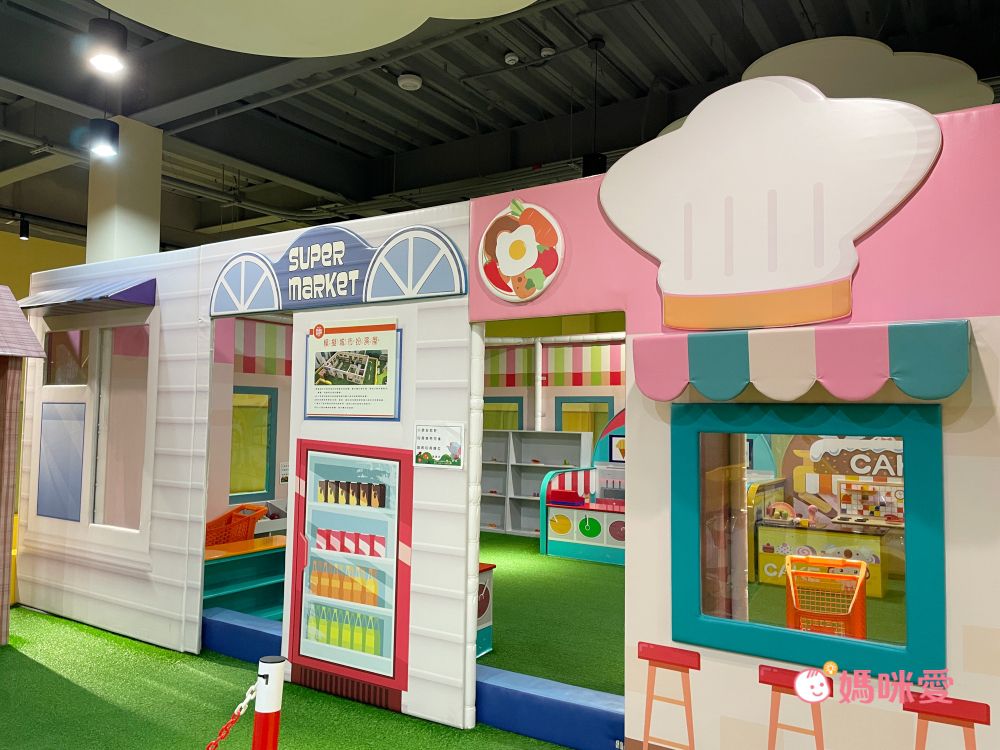 城市扮演屋,從商店、餐廳、廚房、超市等小孩可以扮演各種角色,很適合一群小孩一起玩