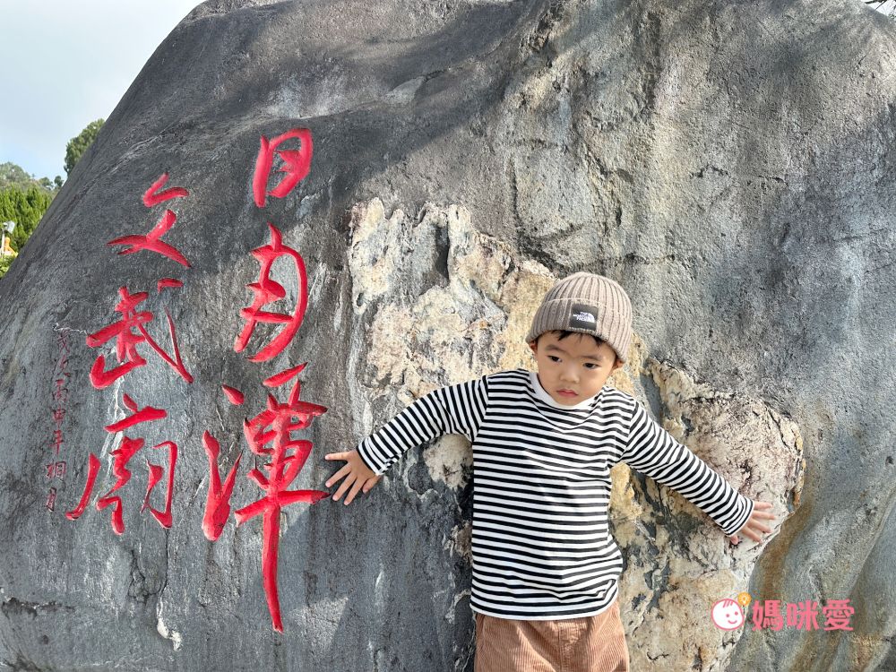 車程約12分鐘就可以到文武廟,一間可以從高處俯瞰日月潭景色的廟宇,裡面非常開闊,還有草坪可以休息也很適合親子同遊。