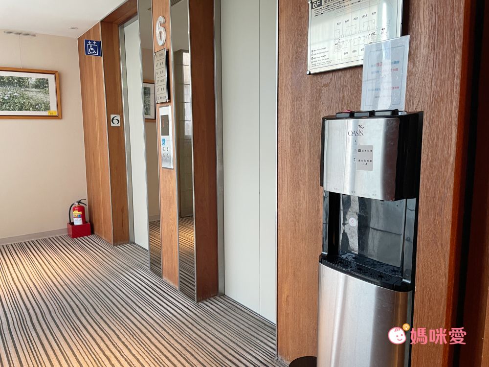 樓層電梯口就有設置飲水機,晚上要泡奶的媽媽們不需要下樓到大廳裝熱水,只需要走出房門就可以裝了,要吃泡麵當宵夜也不用燒開水了,非常貼心