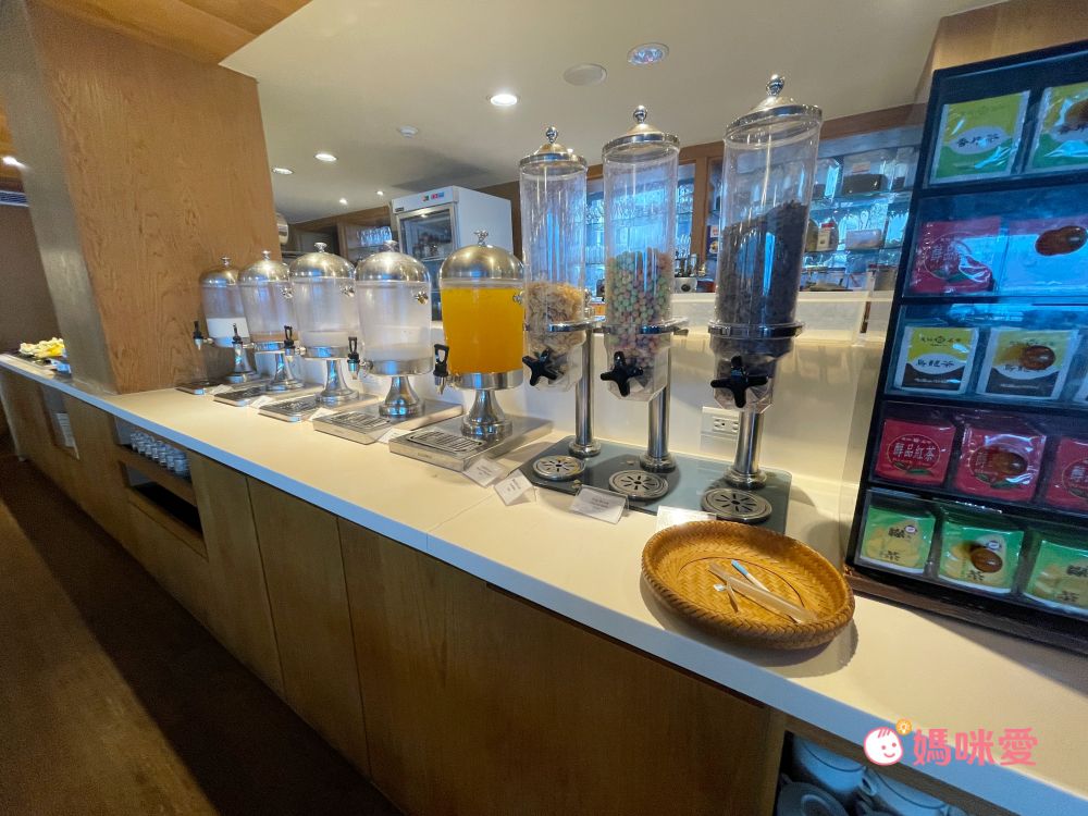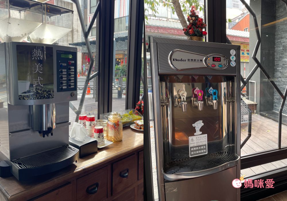 有提供迎賓的點心及飲料可以自行取用。大廳提供開飲機,有需要泡奶奶的家長們可以直接取用非常的便利~