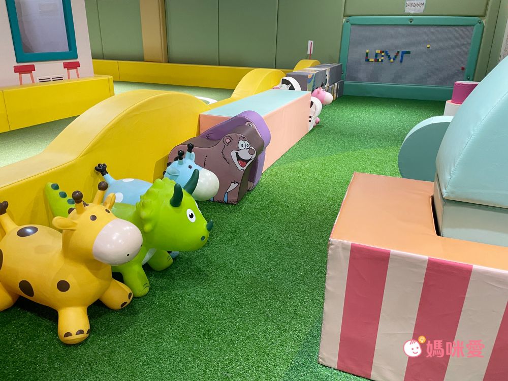 月齡較小的也有提供軟墊可以攀爬和跳跳馬