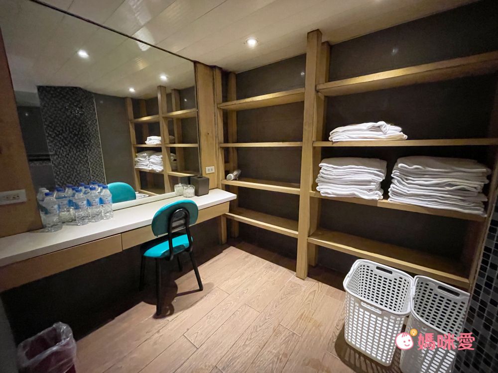 更衣室有提供礦泉水、吹風機和毛巾三溫暖或游泳完也可以在這邊換洗非常方便