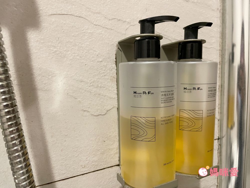 備品提供的是炫日芬的植萃沐浴露和洗髮精,味道是非常舒服的精油香氛味道,洗完也不乾澀。喜歡也可以在大廳櫃檯也有做販售!