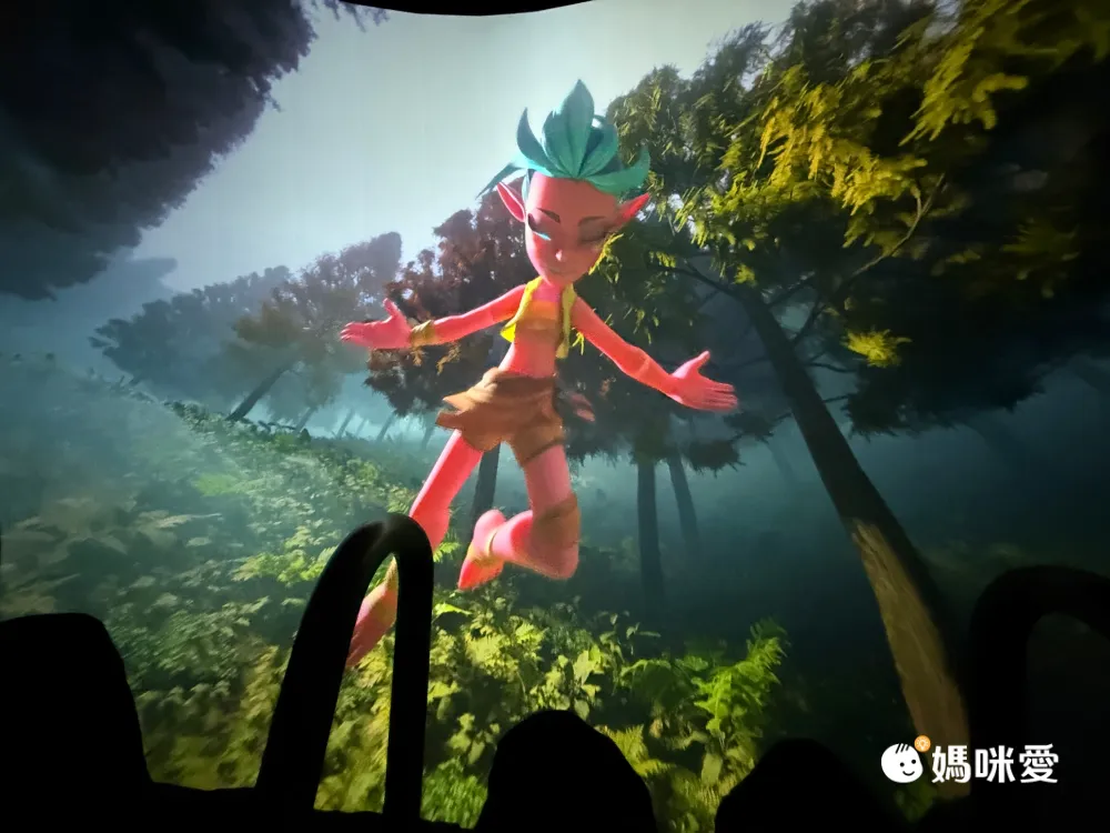 雖然柳橙因為還小,在飛行的時候有點害怕,但她過程中還是很認真在看森林的風景和劇情,搭完之後還是有跟媽媽說「好玩~」。《妖怪森林》的整體畫面也很驚艷,不需要戴 VR 眼鏡,就可以感受到很完整的身歷其境感。唯一的小缺點大概就是——怎麼這麼快就結束了,真的會想再多飛一下內。