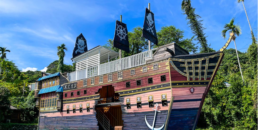 海盜村裡有好多很適合拍照的景點!名氣最大的就是這艘超大海盜船~可以上到2樓登高望遠!