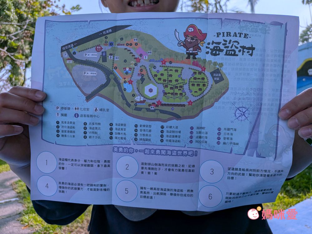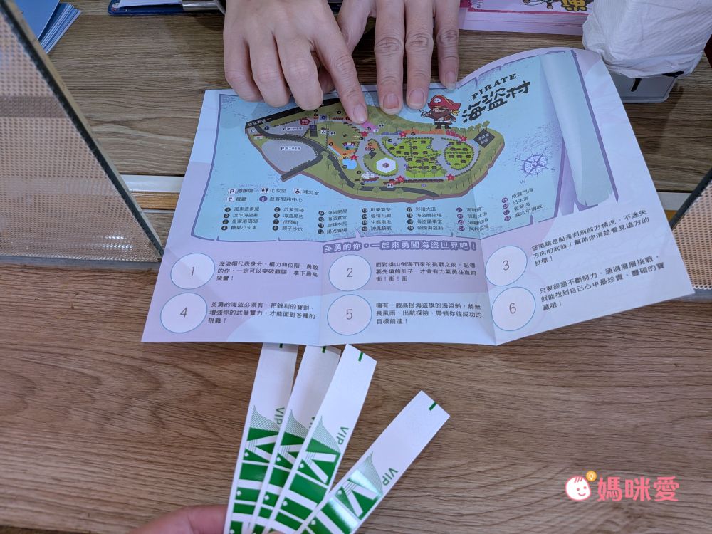 工作人員給我們「藏寶圖」,原來園區設有6個打卡點,只要全部找出來蓋上印章,就可以到「海盜食堂」換取秘寶!