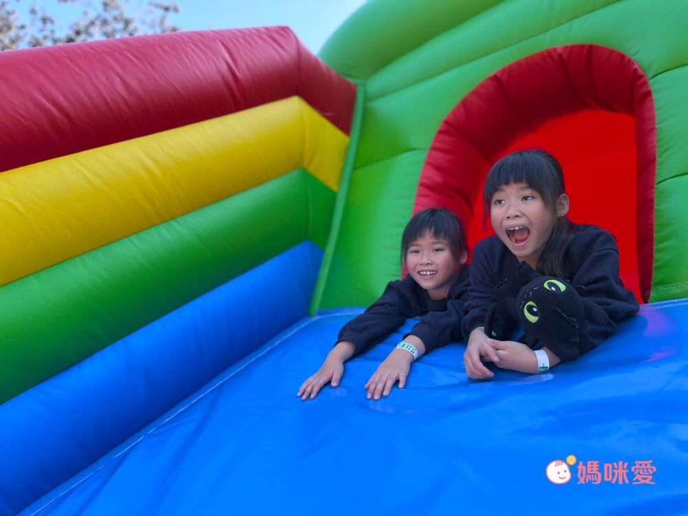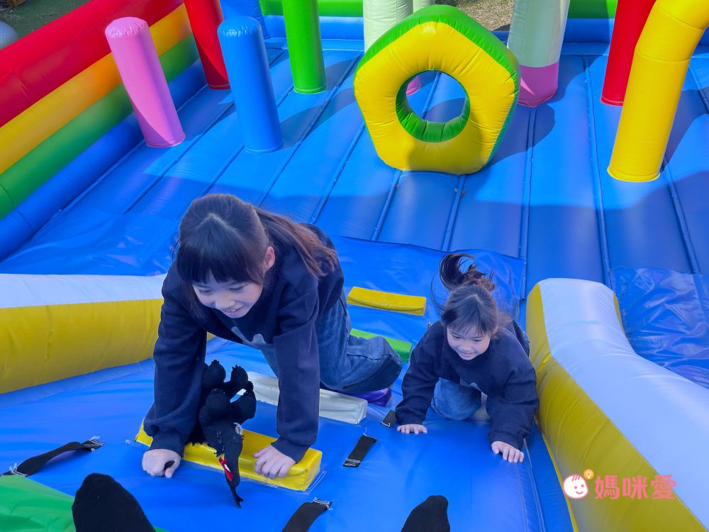 叮噹也在草地上的超大充氣城堡玩了很久喔!連爸比媽咪也忍不住去跳了幾下滑了幾下呢!