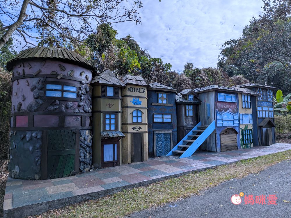還有很多建築物的造景散落園區各處,例如這些矮房子
