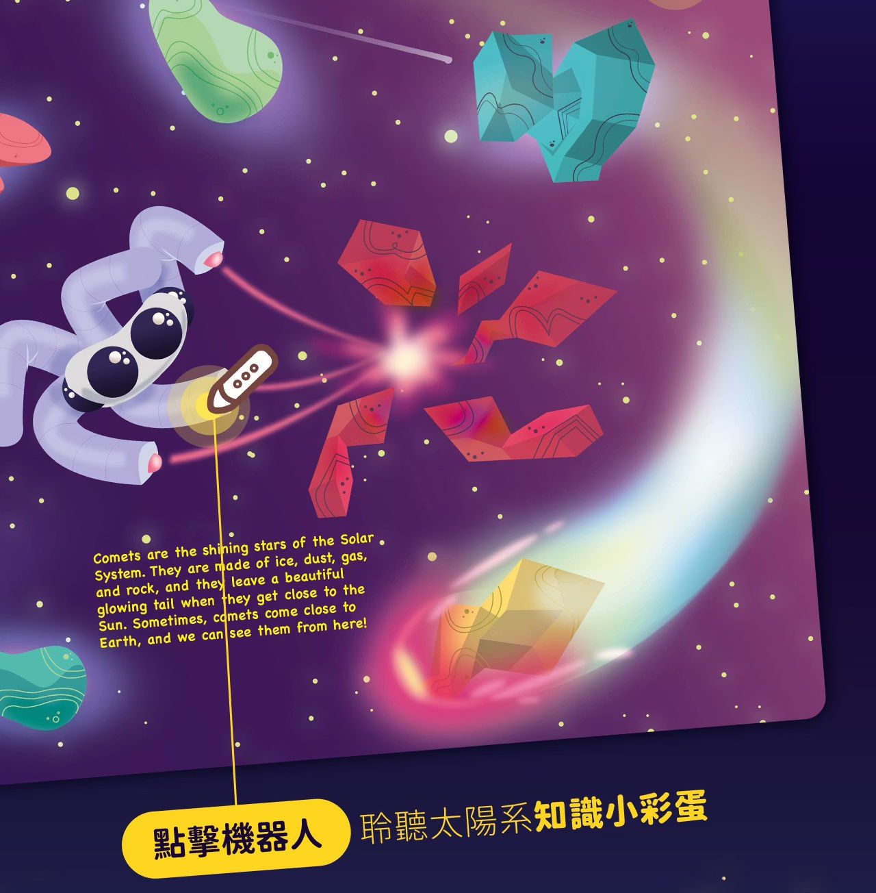 從行星運行到月球繞行;從太空人裝備到小行星與彗星探索;再到太陽系外的無垠星空——孩子在閱讀中自然吸收科學、地理與觀察力的多重知識。