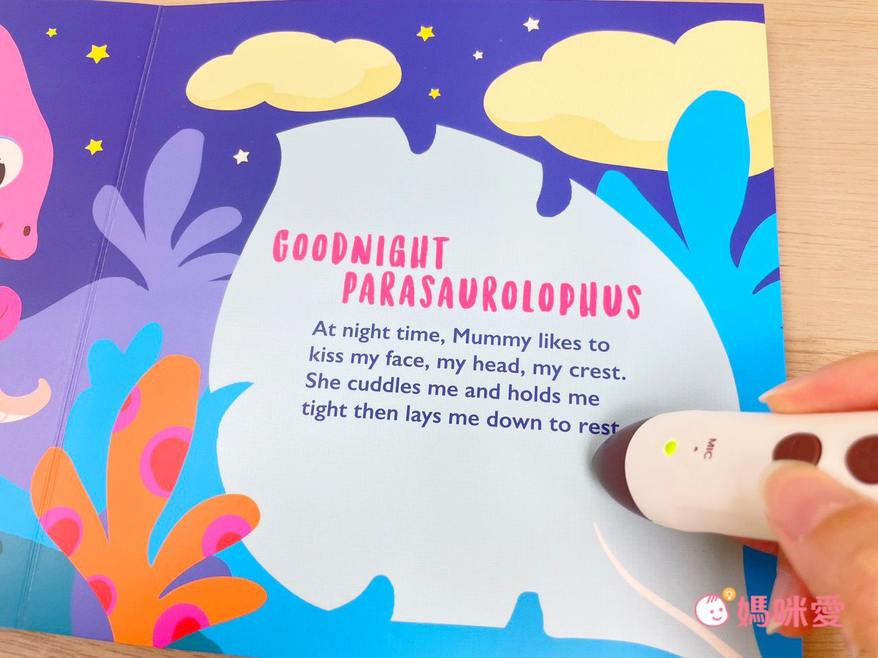 點讀筆播放著頻率穩定且溫柔的英文對話,就像在耳邊說悄悄話,編媽覺得不輸給奶嘴的安撫作用誒!
