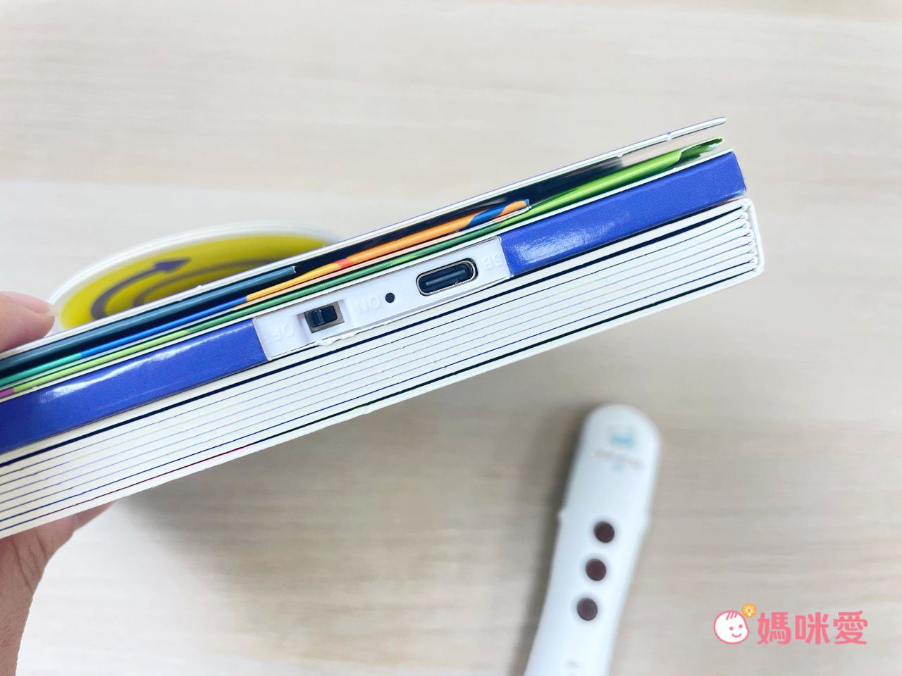 書本的側邊有夜燈開關鍵,還有Type-C充電孔。