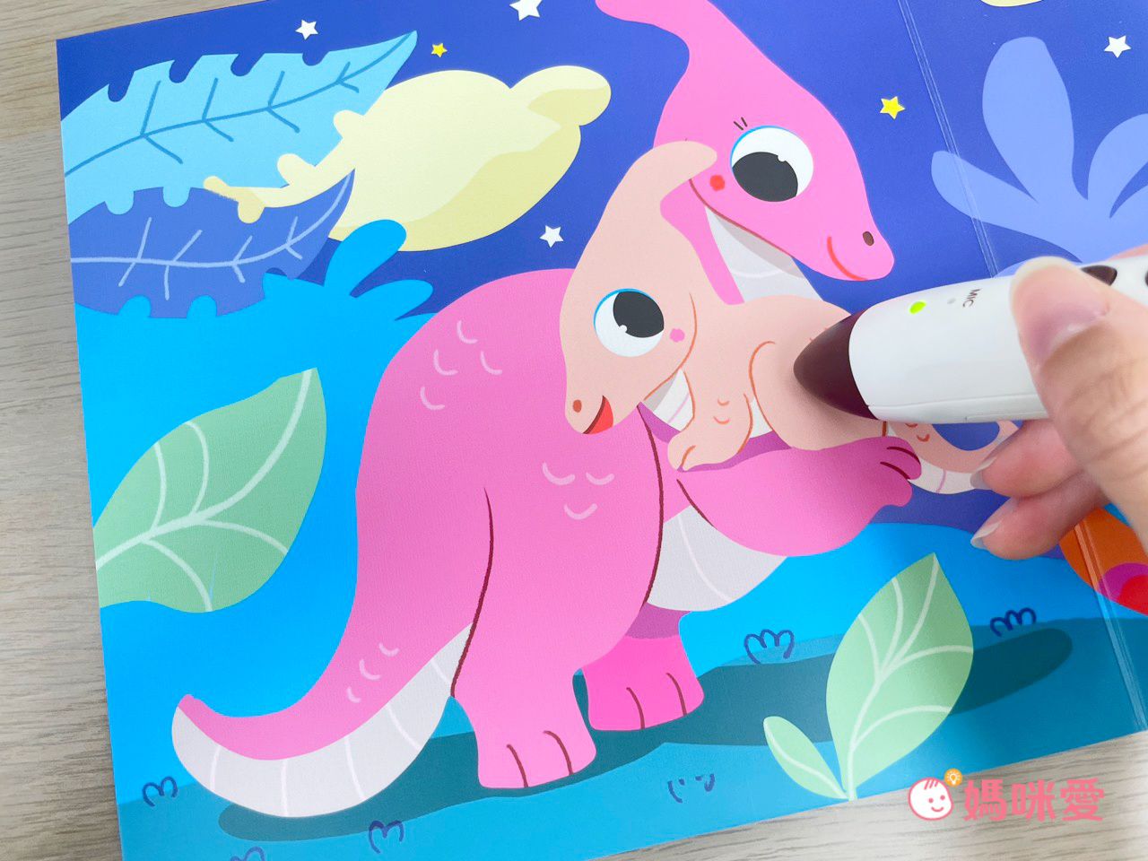 加上把學習變自然:孩子不再是硬背單字,而是邊點讀、邊聽小恐龍對話,自然而然學會了Sleep、nightlight⋯等詞彙。