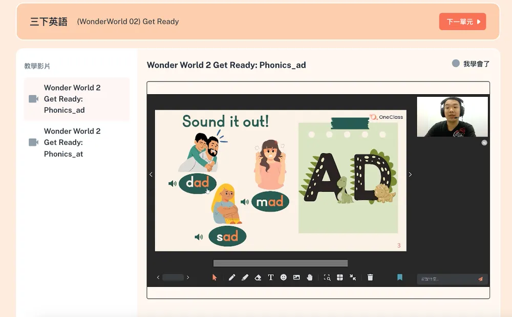 【OneStudy+】是OneClass萬通教育推出的線上學習平台,平台上提供全科全版本的真人家教教學影片課程,還有細分依照學習成績分級的適性的練習題庫,還有專為台灣教材設計,可選南一、康軒、翰林版本,輕鬆接軌學校進度!對於不喜歡補習的孩子、或是時常為了奔走趕接送而勞心勞神、自己教到臉紅脖子粗的父母來說,【OneStudy+】除了擁有像是在補習班的上課實感之外,還結合了線上課程的彈性!讓孩子學習能夠變得更高效和規律、不再有時間與空間的局限性,不僅幫爸媽省下大把鈔票跟心力、也為孩子提供一個適性發展的學習環境!