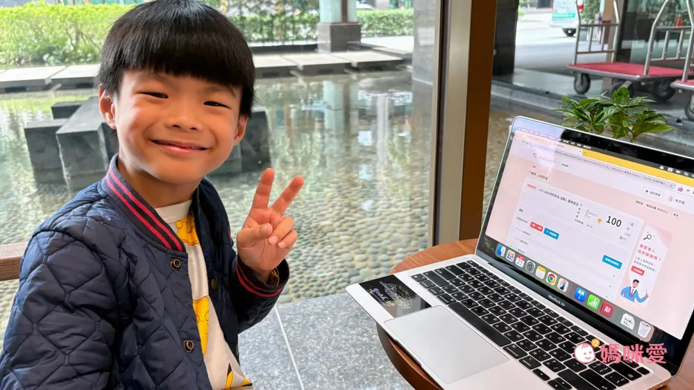 小栗現在是一年級,讓他用有趣的方式學習我認為很重要,培養學習的興趣,而不是壓力。這個線上學習系統無論是畫面呈現,或是課程安排,都是簡潔明快的風格,邊使用電腦,他也邊說「好有趣」,媽媽覺得這就是非常好的開始了!最後附上小栗的數學考題100分的畫面,當然他作答的時候沒有特別「計時」這個嚴苛條件啦,讓他慢慢算XD
