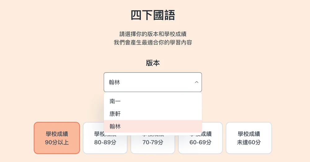 全版本自由切換: 康軒、翰林、南一都能看,補強、預習一鍵搞定。