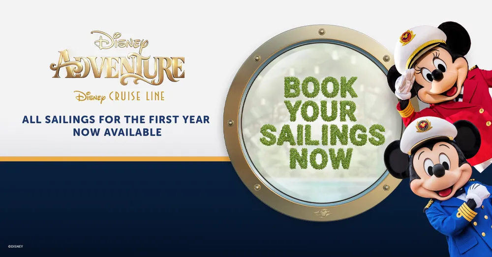 準備開啟一場規模宏大且充滿奇幻色彩的豪華遊輪之旅。迪士尼探險號(Disney Adventure)不僅是一趟旅程,也是一個目的地。遊輪 從新加坡啟航,為賓客提供 3 晚或 4 晚的行程。充分享受歡樂與閒 適、精彩絕倫的娛樂表演、卓越非凡的賓客服務以及迪士尼特色主題餐飲美食,沉浸式體驗海上奇妙之旅。