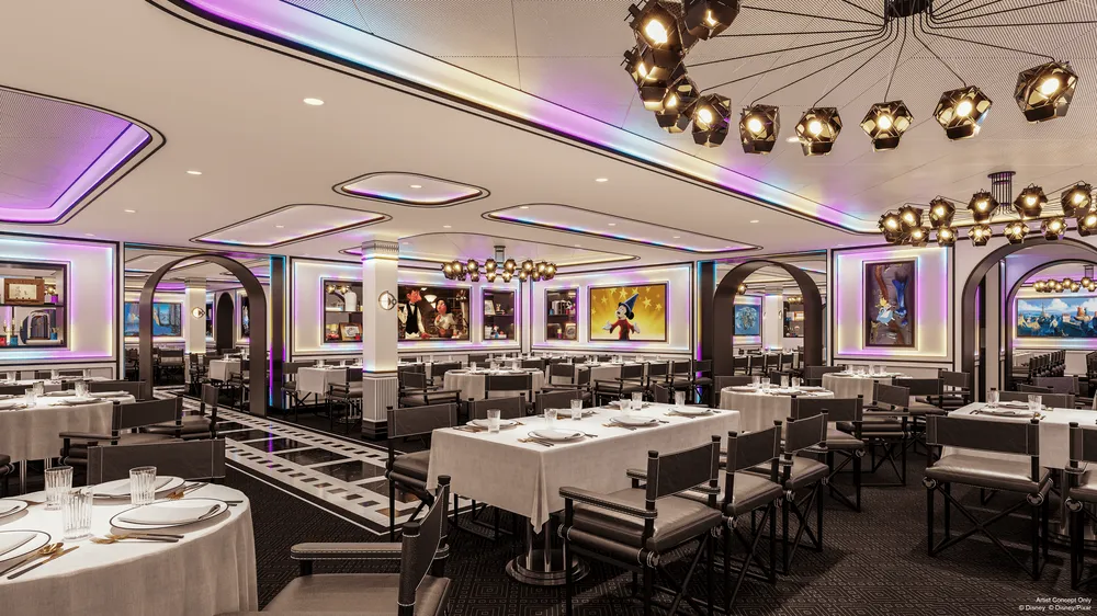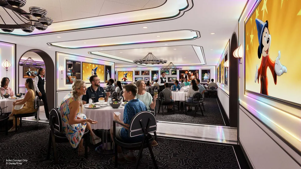 慶祝迪士尼和皮克斯動畫的遺產。這間優雅的餐廳從黑白轉變為充滿活力的全光譜色彩。周圍環繞著來自最受歡迎的迪士尼和皮克斯電影的藝術品和道具,每個細節都向電影製作的魔力致敬。