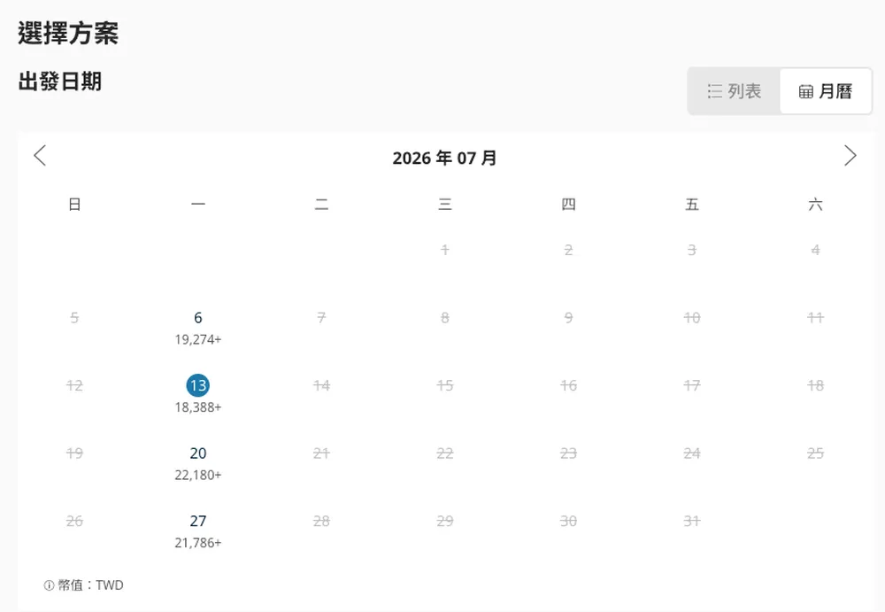 💡 經小編4月中查詢,目前2026暑假7-8月還有便宜的艙房可選‼️ 速速入手~~四天三夜行程內艙四人房只要$18XXX/人起~~~‼️五天四夜行程也只要$22XXX/人起🤩 (下圖範例為2026/7月四天三夜的航次表目前最低價格狀況,請依實際查詢頁面為準~)